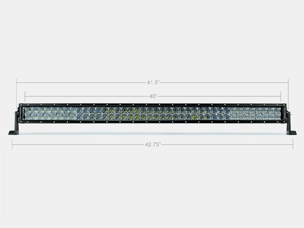 For the perfect combination of capability, durability, and affordability, look no further than this universal Cali Raised LED 42″ dual-row 400W LED bar, putting out an impressive 40,000 Lumens. Ignite the night with confidence rather than shying away from it. The 5D Optic design ensures a wide radius and superior lighting distance, no matter the trails you traverse. 80 premium OSRAM LEDs produce an unmatched level of brightness you can rely on for 50,000+ Hrs. They’re also remarkably durable, thanks to their polycarbonate lenses, extruded aluminum housing, and an IP rating of 68.