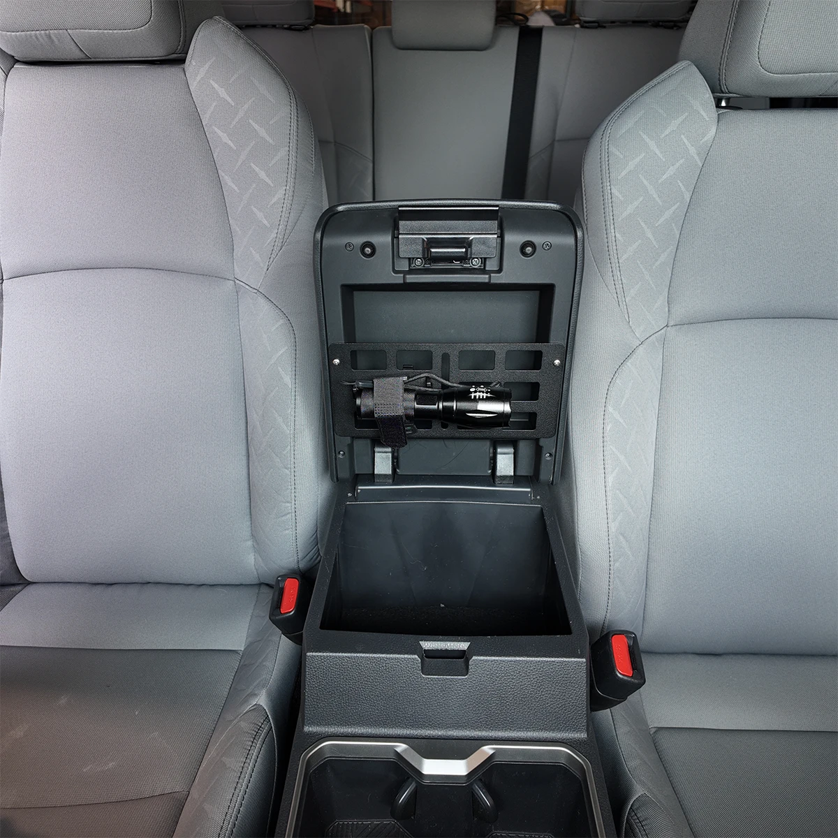Introducing the Cali Raised LED Interior Center Console MOLLE Panel for the 2025 Toyota 4Runner—the ultimate solution for maximizing storage and organization in your vehicle. This innovative panel provides a secure platform for attaching essential items such as garage openers, tools, flashlights, and more. Say goodbye to clutter and hello to convenience, keeping your interior tidy and functional.